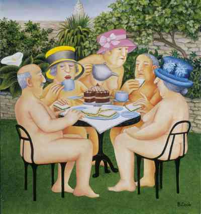 “Tea-in-the-Garden by Beryl Cook