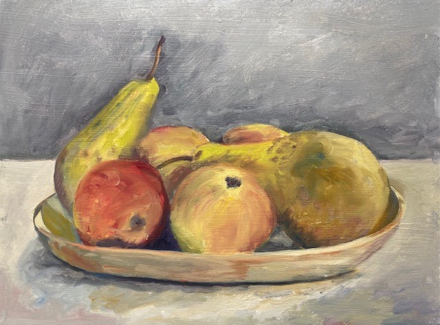 jan blemming Still Life 1 may 2024 29th May 20248th Aug 2024 | art0critic Still Life Pear & Apples in bowl. oil on Canvas
