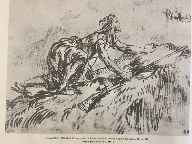 Rare Print Delacroix chase au lion