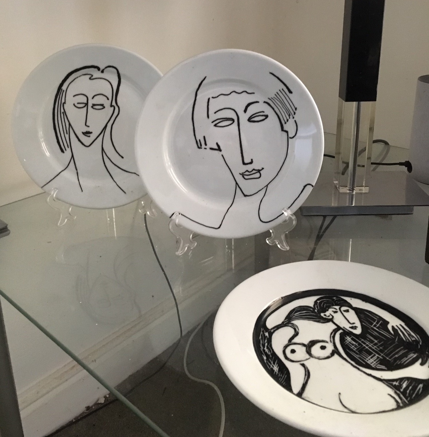 Hand painted white plate by Richard Gower