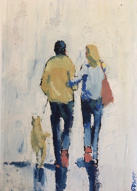 Richard Gower Mini Evening Stroll 7th Nov 202330th May 2024 | art0critic Young couple out for a walk with Dog £195