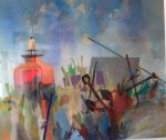 “In the rarefied world of art, an artist, when producing a finished painting, will have several methods to choose from: * organising disorder – any sense will be more complex than the resulting image. * simplifying; eliminating needless detail. * the telling use of colour in all its delights; texture, tone, brushstrokes. * lively treatment, full of movement – or, alternatively, just tranquillity. The world ” inspiration” comes to mind – a strong, loaded word; but the artist’s sense of purpose will make or mar the work. We all have our own individual style, much as in handwriting, but the key is how it will be seen by the viewer. In more recent years, I have concentrated on the experimental ideas, the benefits of exaggeration and emphasis, preferably enlivened by vivid colour, as well as different ways of depicting quite ordinary subjects. Many of these relate to marine scenes – boats, harbours, coastline, tidal surge, rock pools – but returning often, also, to just exploring fresh ideas in my own version of experimental modern painting.”