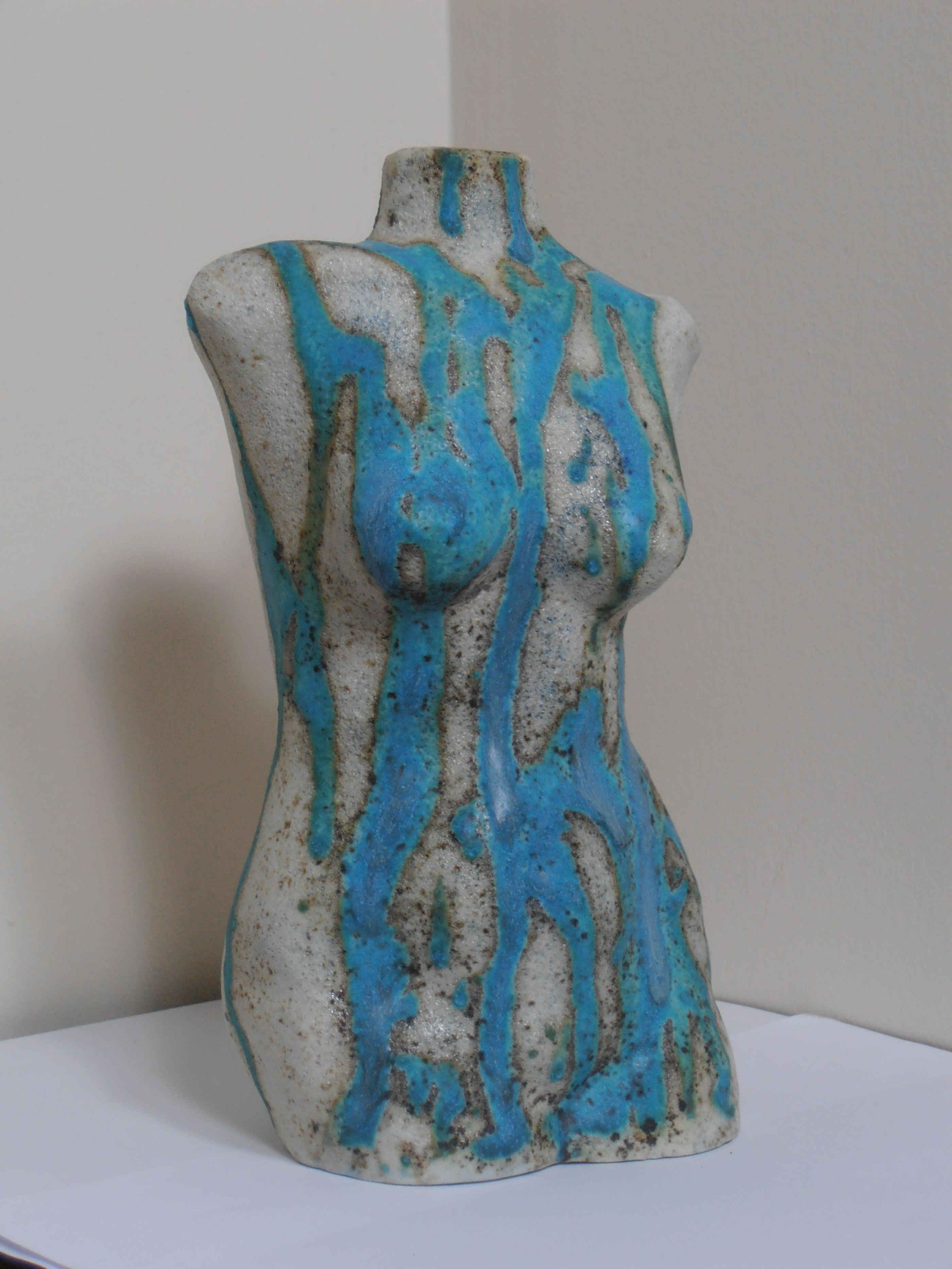 Suszanne Needham Ceramic body-sculpture Apl 2023 24th May 20235th Mar 2024 | art0critic Hand Crafted Smoke Fired Porcelain Torso Sculpture.
