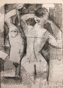 Stephen Spicer Reflection Nude Jan 2024 The back of a woman looking in the Mirror. Cubist Style Sketch